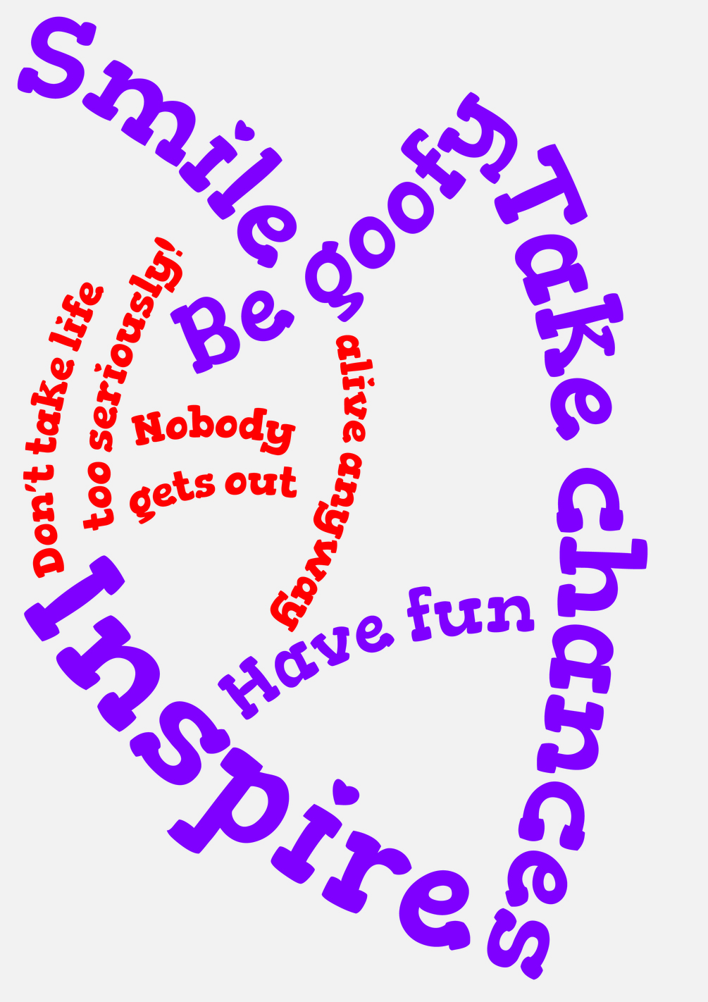 - Typographic expression encourages you to smile, inspire, be goofy, take chance, and have fun.